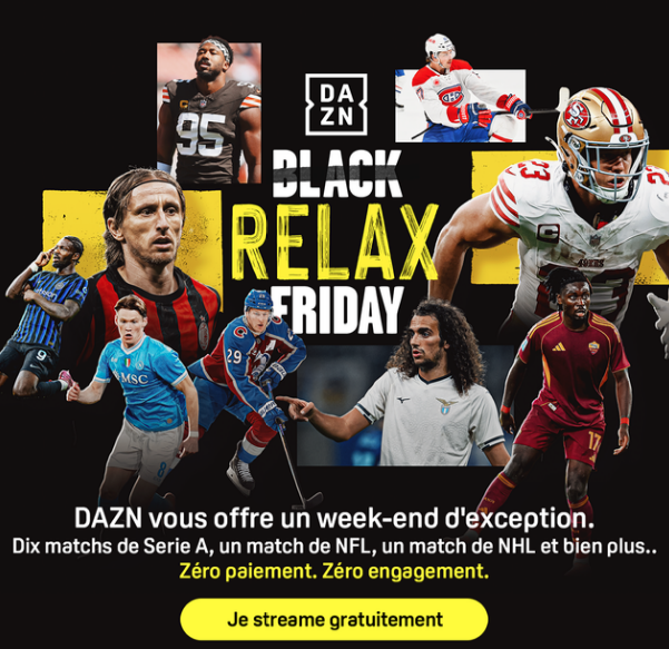 DAZN a annoncé mercredi 26 novembre un « Black Relax Friday », offrant un accès gratuit à des contenus sportifs ce week-end.