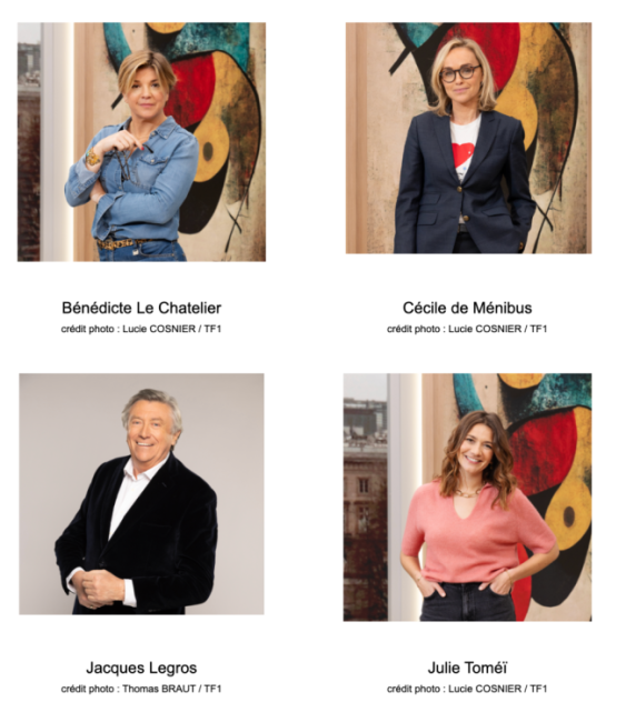 Du lundi au vendredi, Christophe Beaugrand sera entouré de quatre chroniqueurs : Bénédicte Le Chatelier, journaliste de LCI, Cécile de Ménibus, ex-figure de La Méthode Cauet, Jacques Legros, qui a quitté la présentation du JT de 13h en mai dernier, et Julie Toméï, journaliste de 50′ inside.